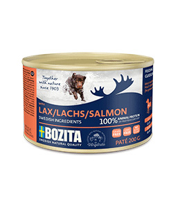 ボジータ犬用サーモンウェットフードは、選び抜かれた新鮮なスウェーデン産のサーモンを使用した、とても美味しく栄養価の高いスペシャルウェットフードです。